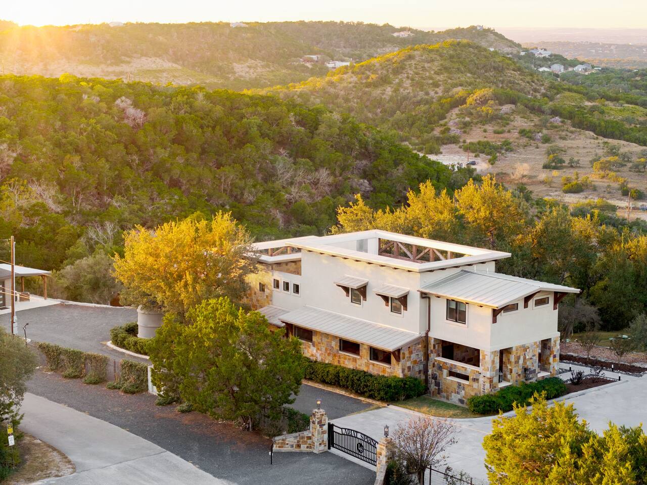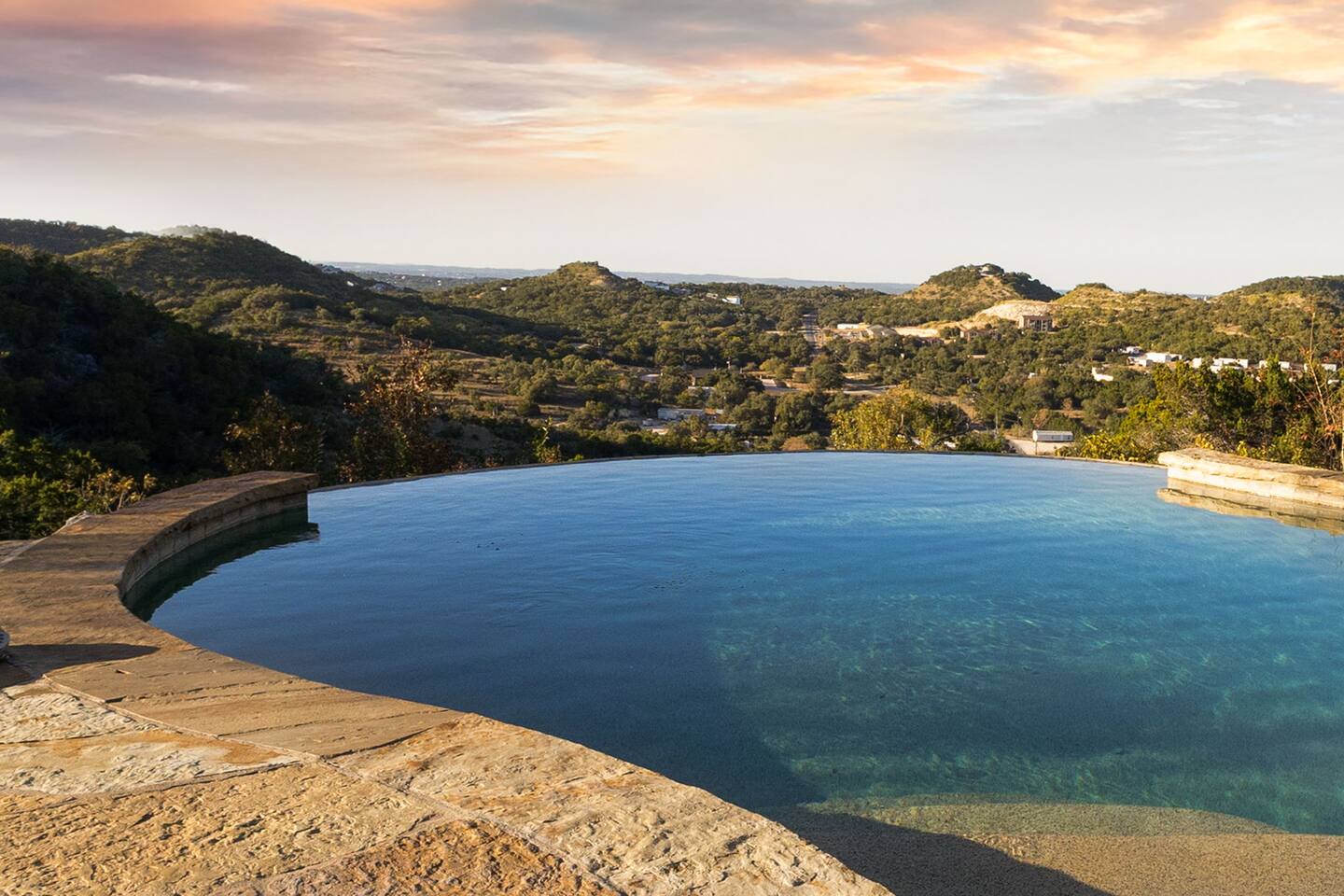 Hilltop retreat villa between Canyon Lake and New Braunfels. infinity pool, heated spa, chef's kitchen, pizza oven, and sweeping Hill Country views.